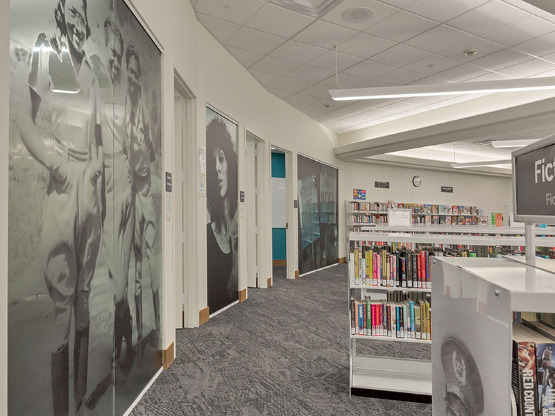 اعرض مكتبة أبحاث Blair-Caldwell الأمريكية الأفريقية في خريطة أكبر