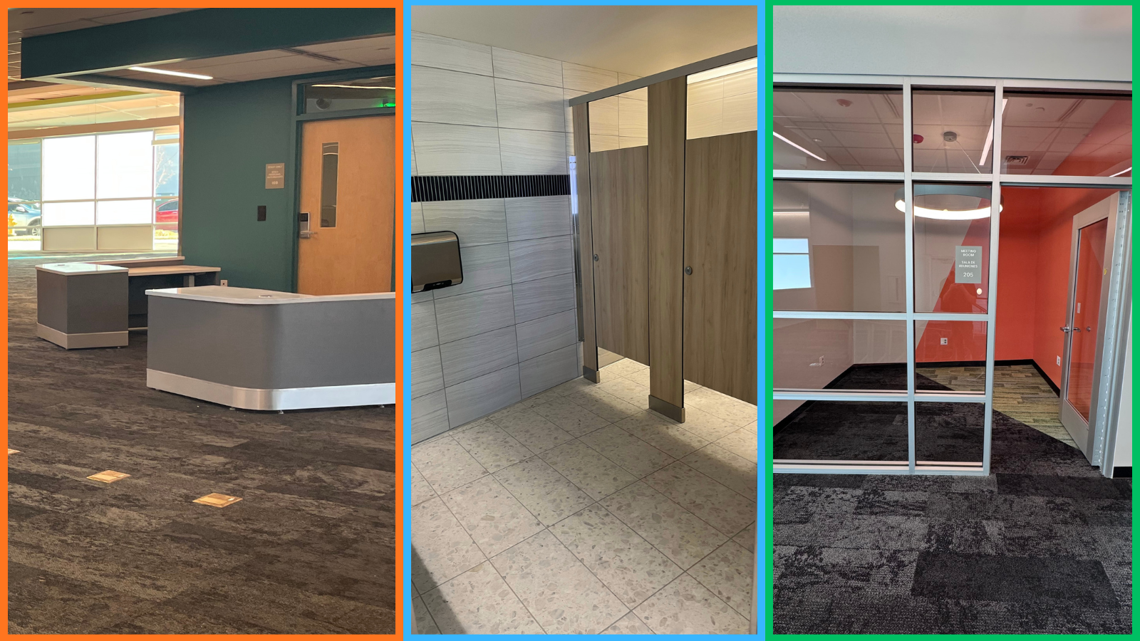 What’s going on at Schlessman? Right now we’re in Phase 2 of the renovation process. Here’s a sneak peek at the space, showing off the new meeting rooms, and restrooms.